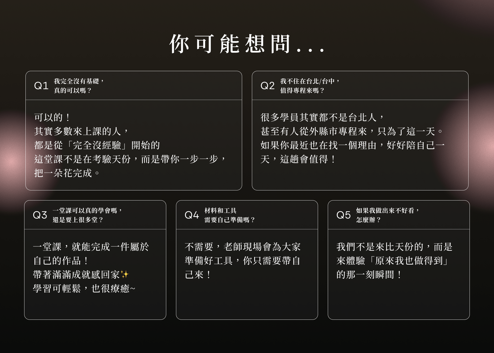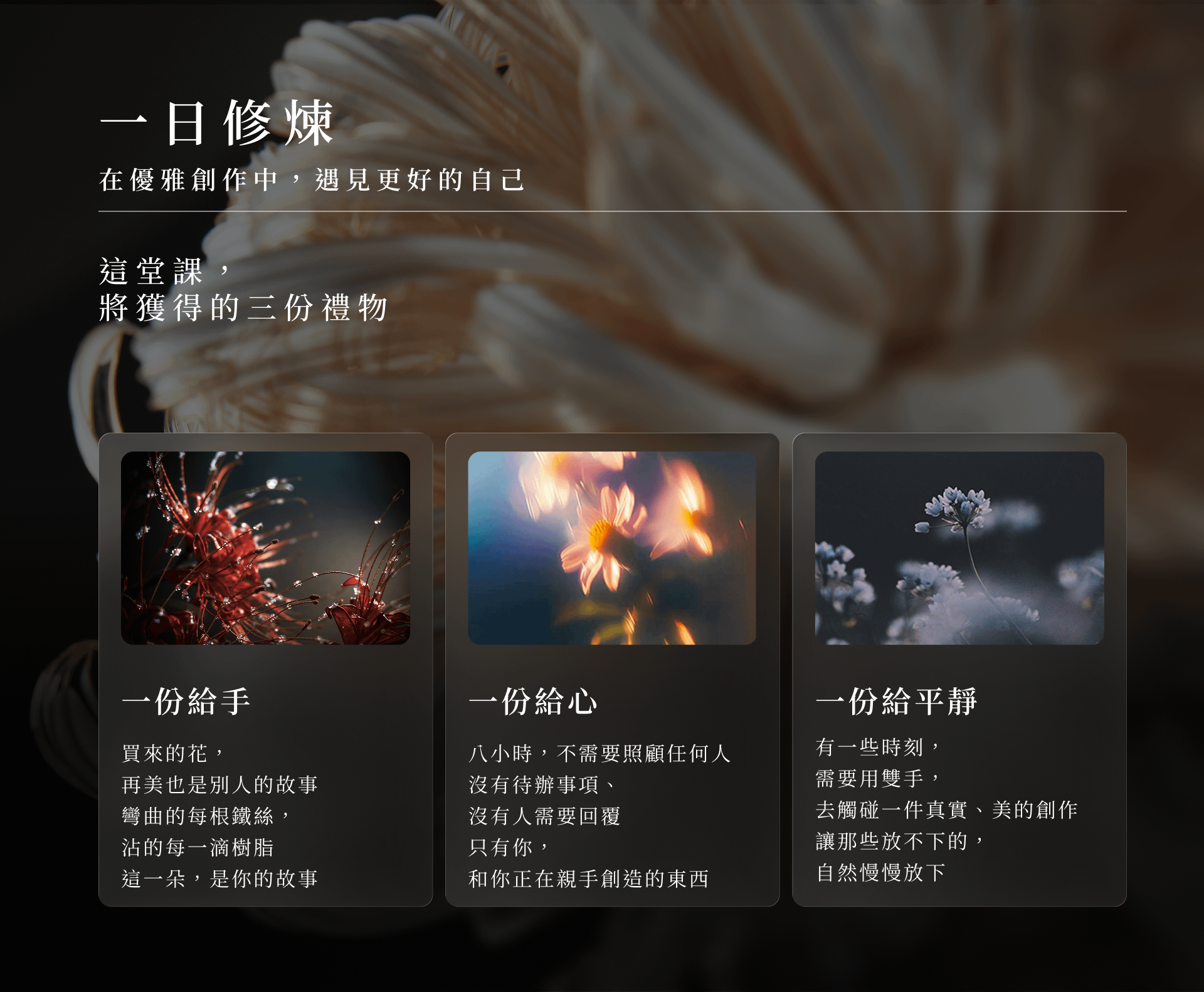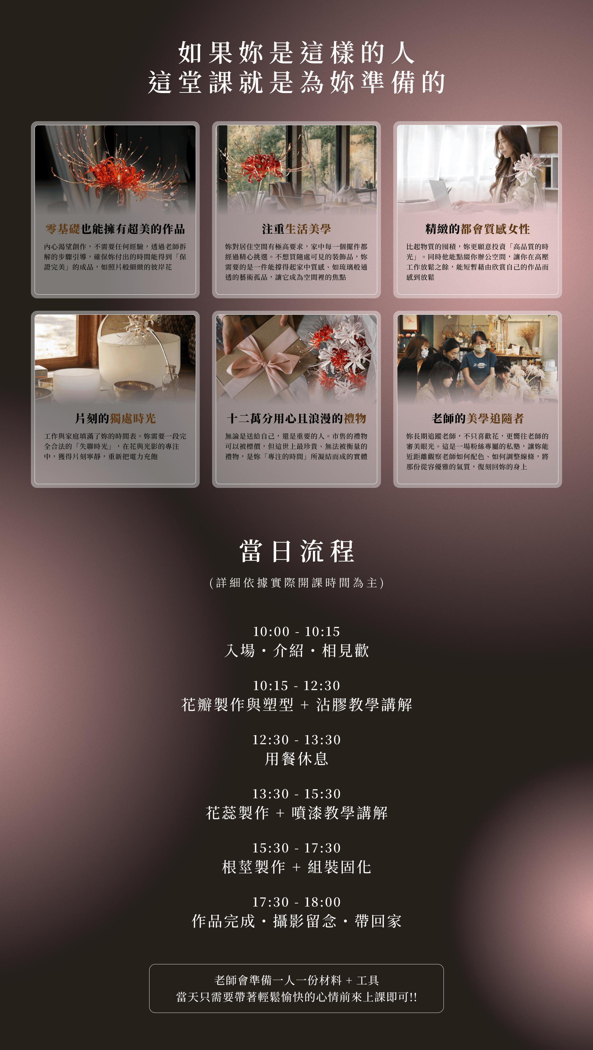 給自己一段只屬於自己的時光!8 小時不需要照顧任何人,沒有待辦事項,只有你與正在親手創作的美麗作品。